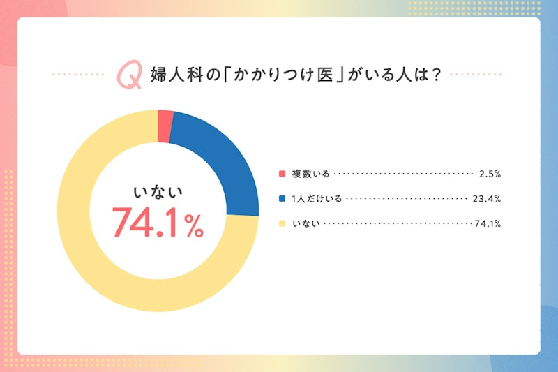 また、7割以上の女性には、かかりつけの婦人科医がいないという結果も出ています。
