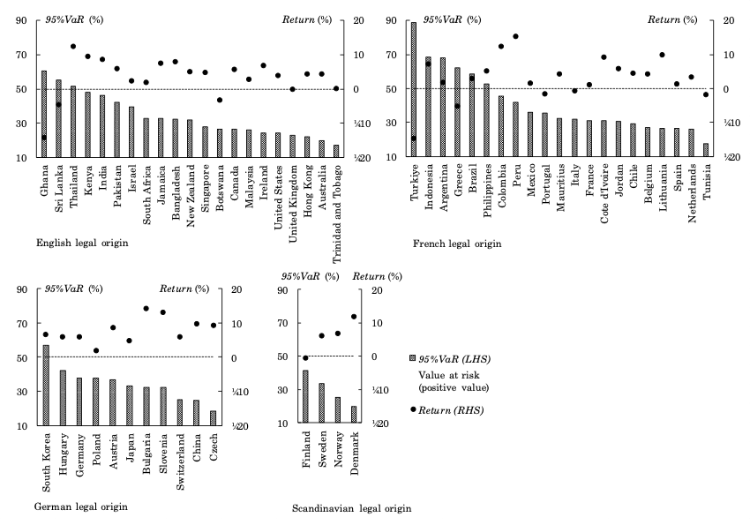 諸外国といっても、各国には各国の法の起源が存在します。したがって、当該国が継受した法の起源と少数株主保護や債権者権利などの関連性を鑑みてアセット・アロケーションを導くことで、制度的齟齬が生じる確率を低下させることができると考えています。制度的齟齬とは、法の起源に馴染みのない法律や制度を強制的に導入することで生じる現象を意味します。