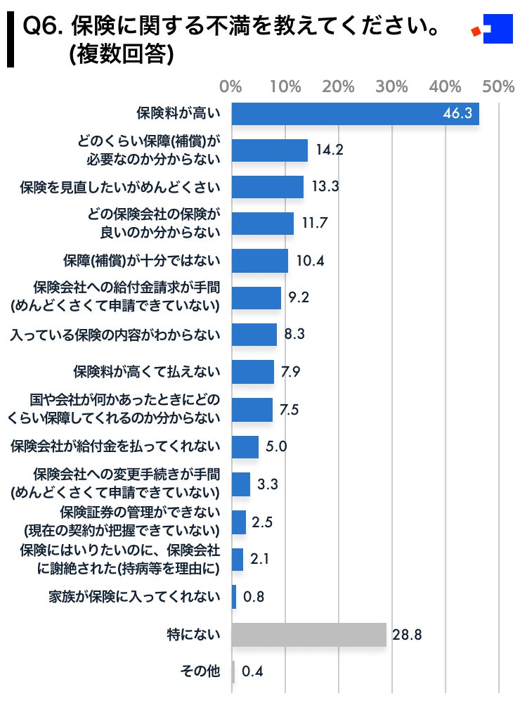 Q6 保険に関する不満を教えてください。(複数回答) %