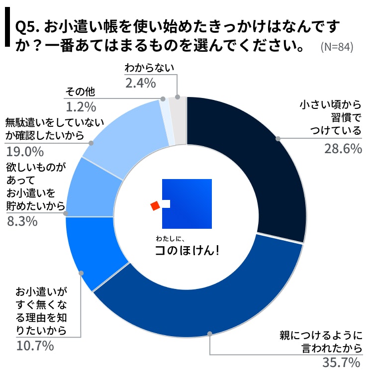 Q5.お小遣い帳を使い始めたきっかけはなんですか?一番あてはまるものを選んでください。(Q3でつけていない、わからないという回答を除く。N=84)