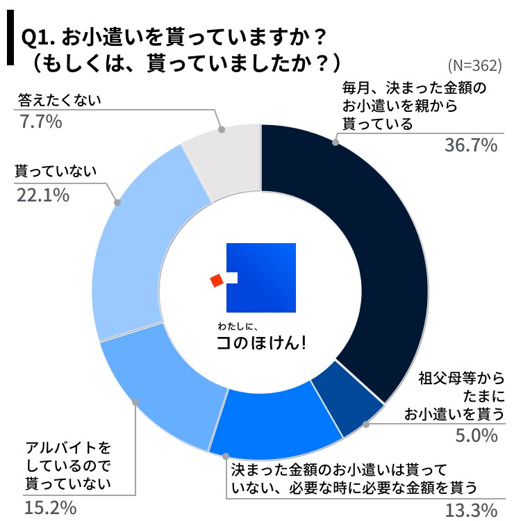Q1.お小遣いを貰っていますか?(もしくは、貰っていましたか?)(N=362)