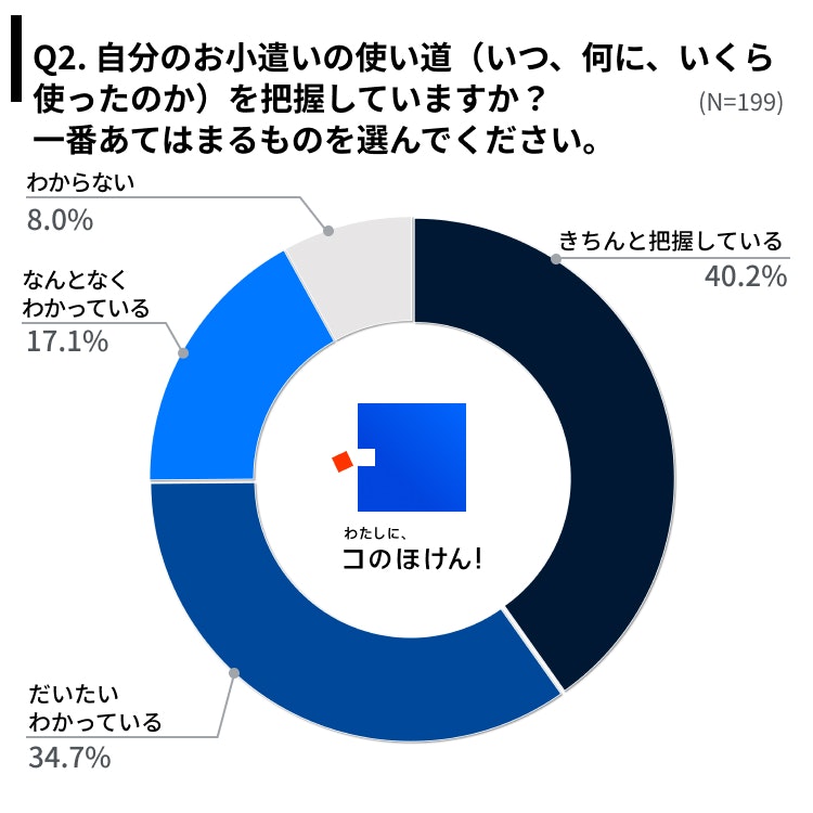 Q2.自分のお小遣いの使い道(いつ、何に、いくら使ったのか)を把握していますか?一番あてはまるものを選んでください。(Q1でアルバイトをしているので貰っていない、貰っていない、答えたくないという回答を除く。N=199)