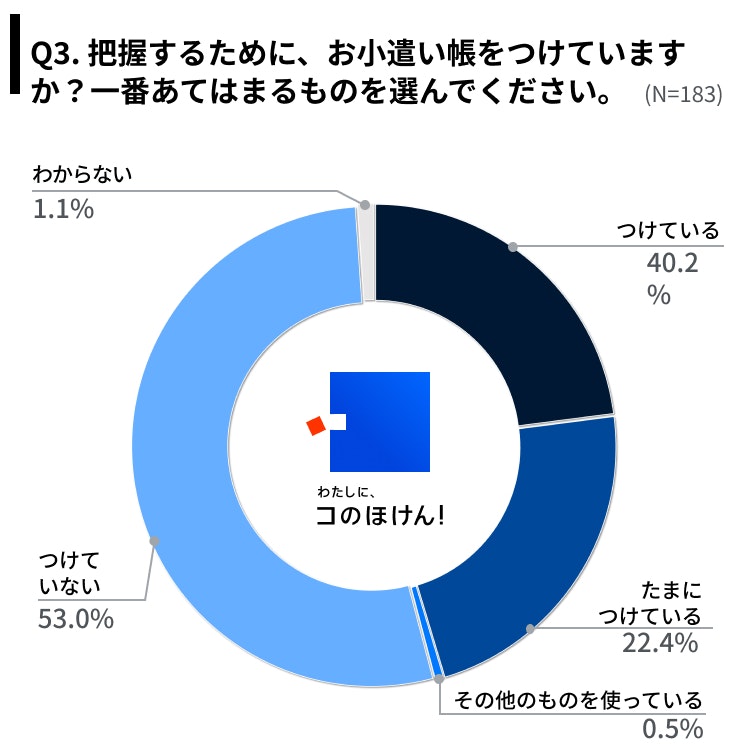 | Q3.把握するために、お小遣い帳をつけていますか?一番あてはまるものを選んでください。 | % |
