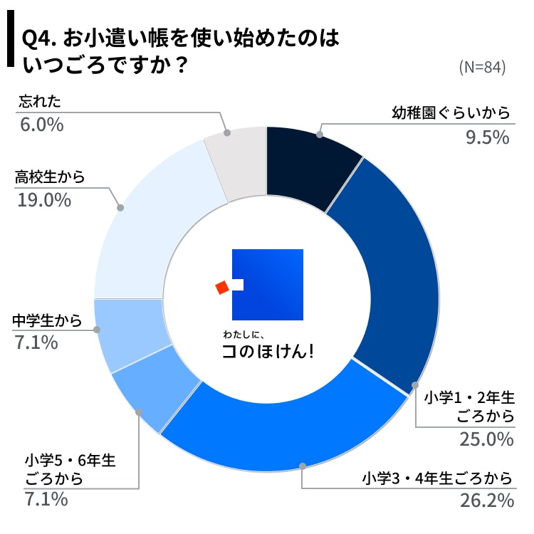 Q4.お小遣い帳を使い始めたのはいつごろですか?(Q3でつけていない、わからないという回答を除く。N=84)