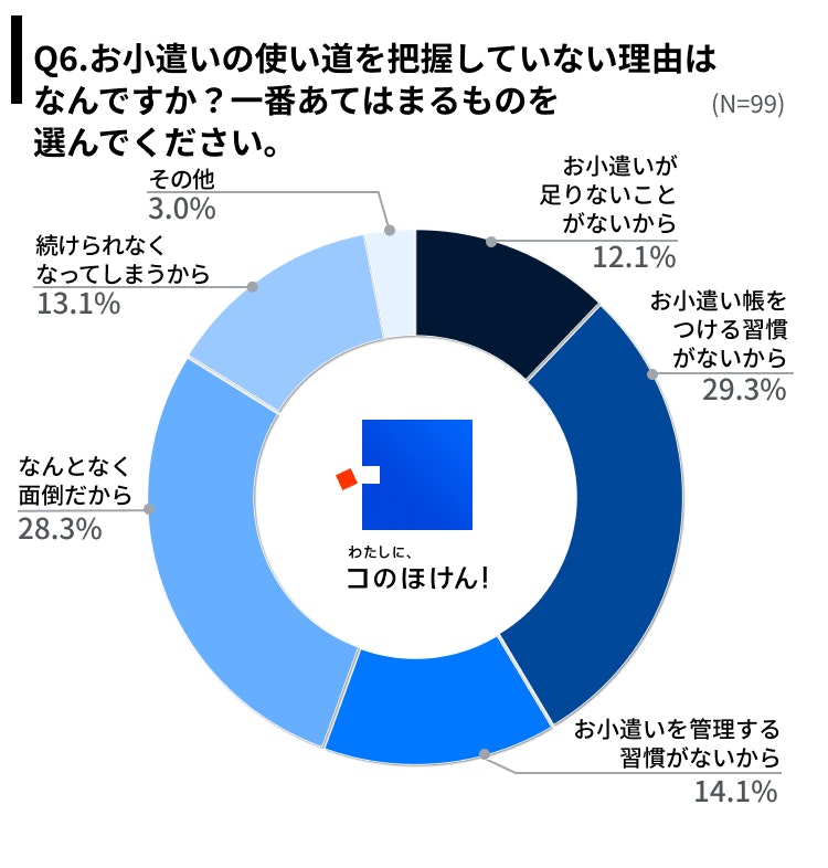 Q6.お小遣いの使い道を把握していない理由はなんですか?一番あてはまるものを選んでください。(Q3でつけていない、わからないと回答した人。N=99)