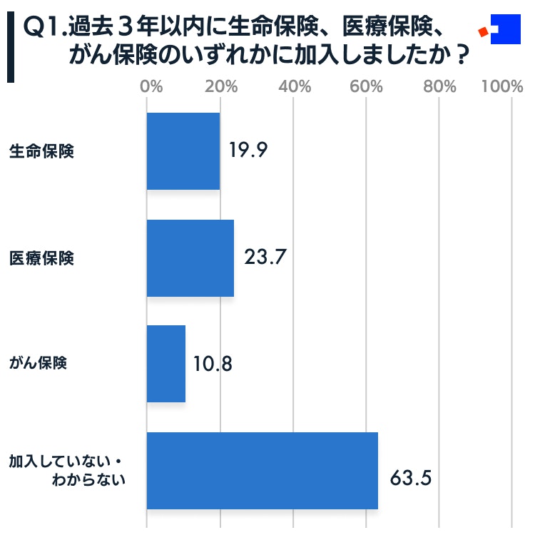 | Q1 | 過去3年以内に生命保険、医療保険、がん保険のいずれかに加入しましたか? | % |