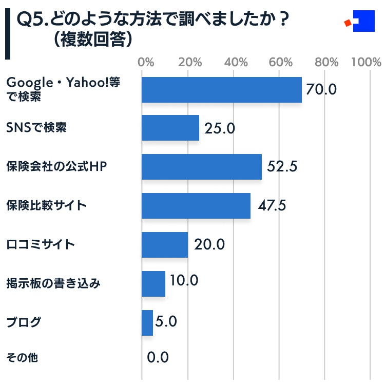 Google・yahoo!などの検索エンジンで検索しつつ、SNSで検索したり、保険会社公式HPや比較サイト、口コミサイトなどを活用しながら、総合的に、様々な角度からの情報を集めて調べる方が多いようです。
