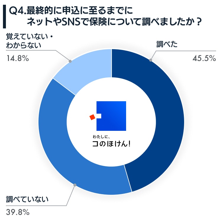 | Q4 | 最終的に申込に至るまでにネットやSNSで保険について調べましたか? | % |