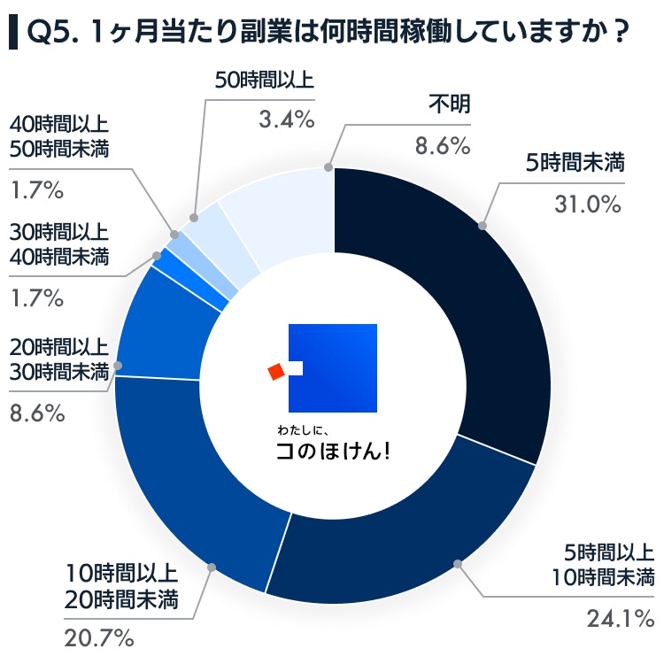 | Q5 | 1ヶ月あたり副業は何時間稼働していますか? | % |