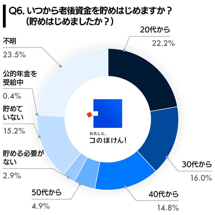 | Q6 | いつから老後資金を貯めはじめますか(貯めはじめましたか)? | % |