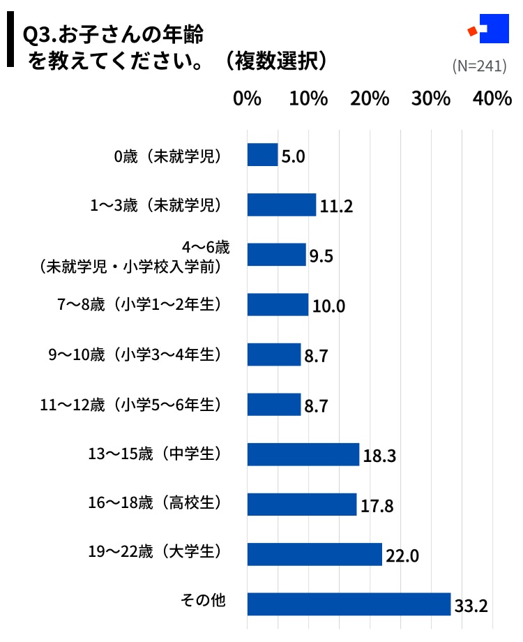 | Q3 | お子さんの年齢を教えて下さい。(複数選択) | % |