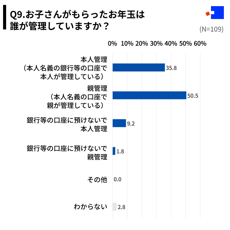 | Q9 | お子さんがもらったお年玉は誰が管理していますか? | % |