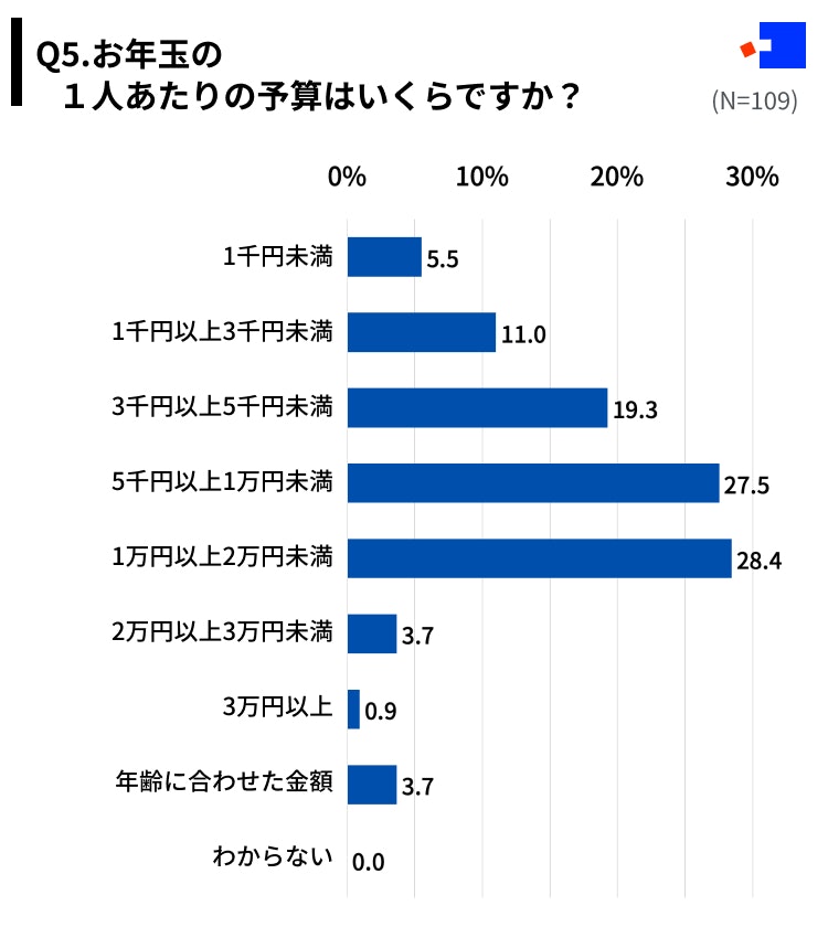 | Q5 | お年玉の1人あたりの予算はいくらですか? | % |