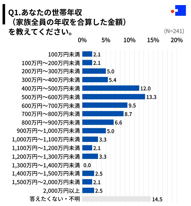 Q1.あなたの世帯年収(家族全員の年収を合算した金額)を教えてください。(N=241)