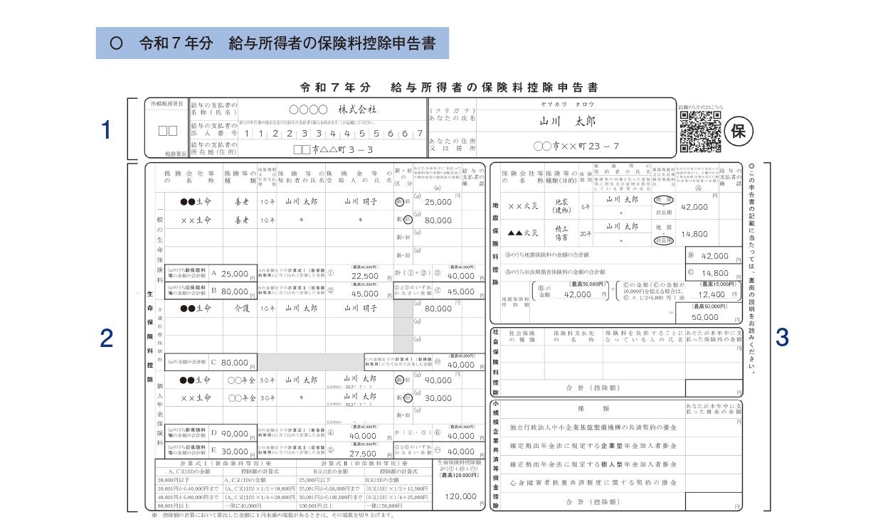 最後に、一般の生命保険料控除と個人年金保険料控除を合計した生命保険料控除額を記入します。
